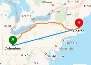 From Columbus OHIO to Boston Mass is 777 Miles.